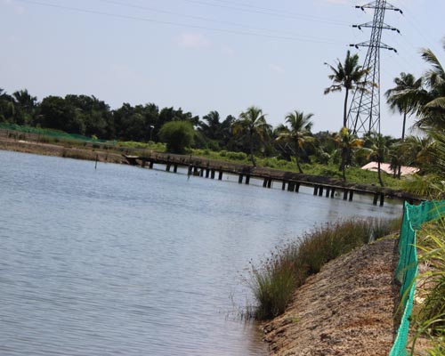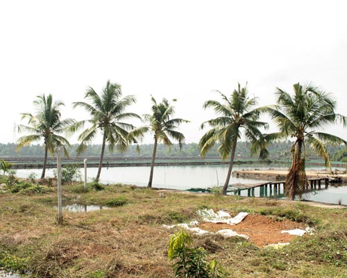* Fenced-in water to grow prawns.